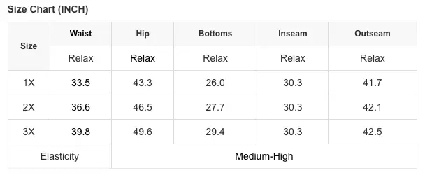 1X – 14W-16W, 2X – 18W-20W, 3X – 22W-24W