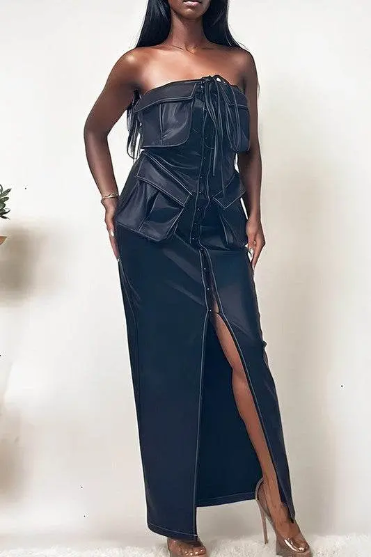 - High-Slit Skirt: The high-slit design ensures a dramatic entrance and ease of movement, perfect for glamorous nights out.