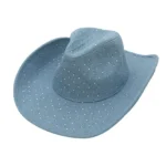 Whether you’re attending a festival, going out for a night on the town, or simply want to add a bit of sparkle to your everyday look, the Crystal Studded Denim Cowboy Fedora Hat is the perfect choice. Embrace your inner fashionista and turn heads wherever you go!
