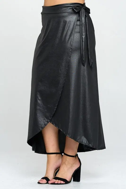 Turn heads in this flattering, high-shine wrap skirt perfect for nights out or chic daytime looks.