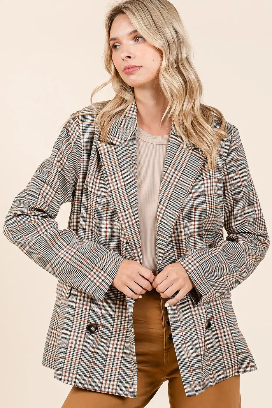 Trendy Plaid Blazer with Double-Breasted Design | Relaxed Fit for Effortless Work-to-Weekend Outfits