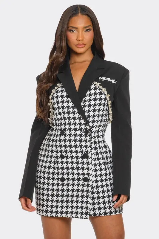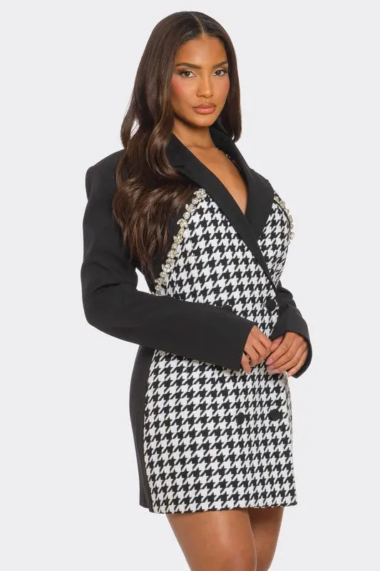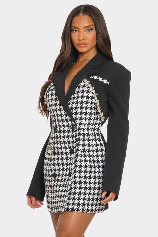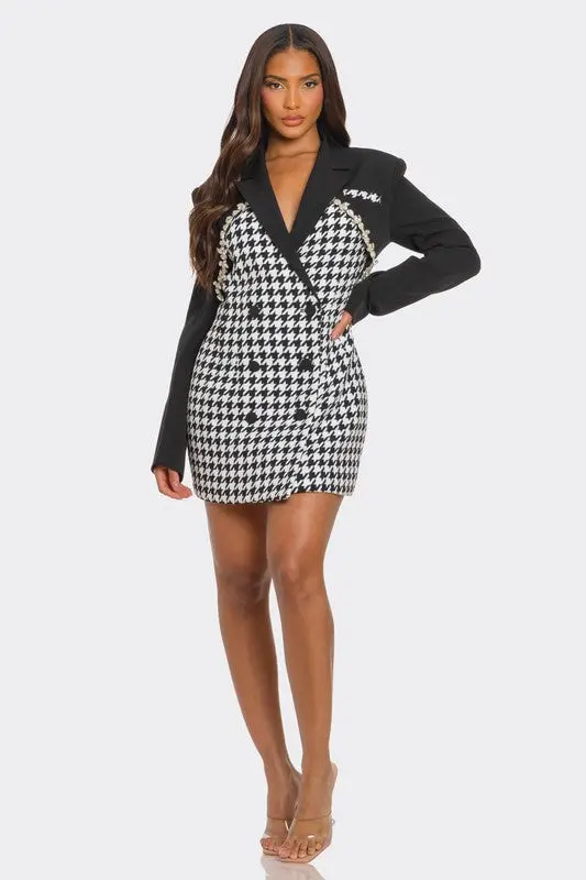 Upgrade Your Wardrobe with the Monochrome Glam Houndstooth Blazer Dress